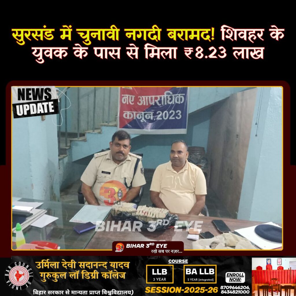 ⚡ “8 लाख की नकदी के साथ पकड़ा गया युवक — सुरसंड में पुलिस ने बढ़ाई निगरानी, चुनावी सीजन में खलबली”