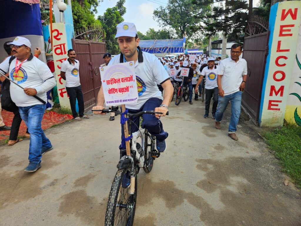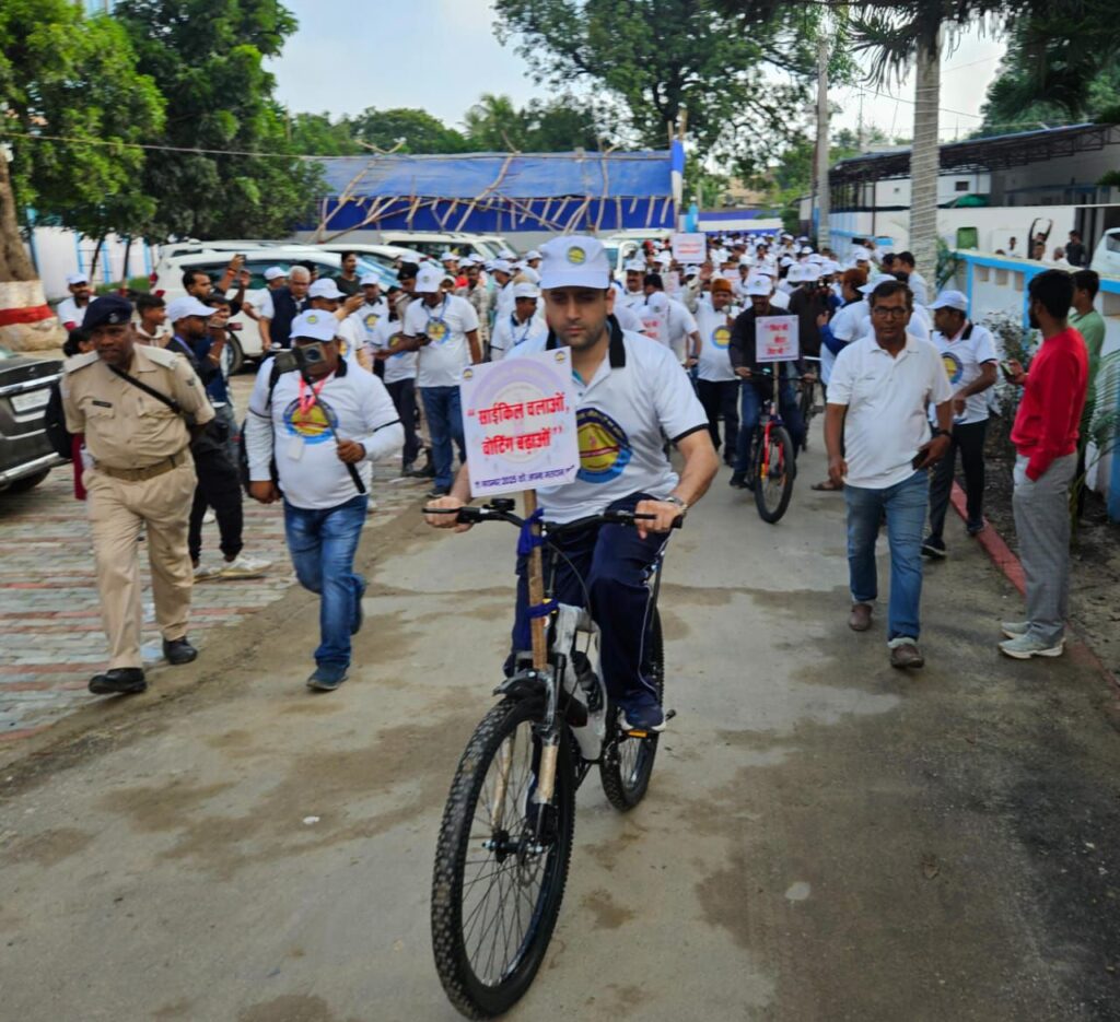 आगामी विधानसभा चुनाव में शत-प्रतिशत मतदान के लक्ष्य से रविवार को राजोपट्टी परिसदन से भव्य साइकिल रैली निकाली गई।