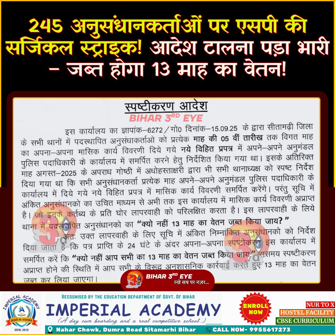 245 अनुसंधानकर्ताओं पर एसपी की सर्जिकल स्ट्राइक! आदेश टालना पड़ा भारी – जब्त होगा 13 माह का वेतन!