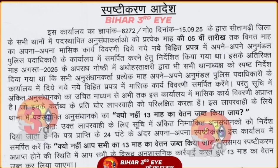 > “अगर 24 घंटे के भीतर स्पष्टीकरण नहीं मिला, तो 13 माह का वेतन जब्त कर लिया जाएगा।”